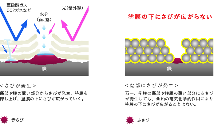 一般塗料は「環境遮断」によるさび止めであるため、